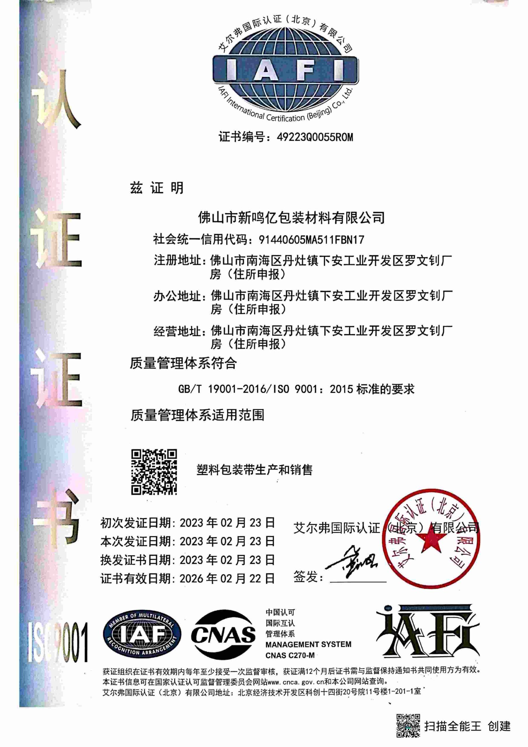 Foshan Weide Chuangyi Packaging Materials Co., Ltd. is a subsidiary of Foshan Xinmingyi Packaging Materials Co., Ltd. The company is located in Dongkeng Industrial Zone, Dujia, Luohang, Danzao Town, Nanhai District, Foshan City. It was founded in 2004 and has an independent factory building of 10,000 square meters. It is a packaging material supplier integrating R&D, production and sales. The company focuses on the production of: PP strap, PET strap, fully automatic PP strap, semi-automatic PP strap, Stretch Film, Paper corner protector, etc. Since its establishment, the company has continuously improved product quality and updated production equipment. It serves the electronics, hardware, furniture, clothing, logistics, electrical appliances and other industries with excellent and complete products. Adhering to the business purpose of “quality first, customer first”, it has won recognition from all parties.